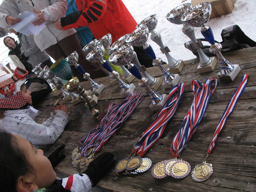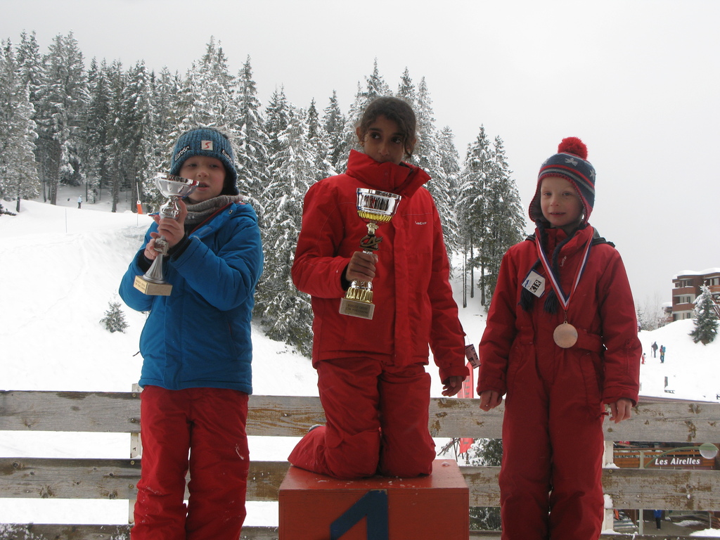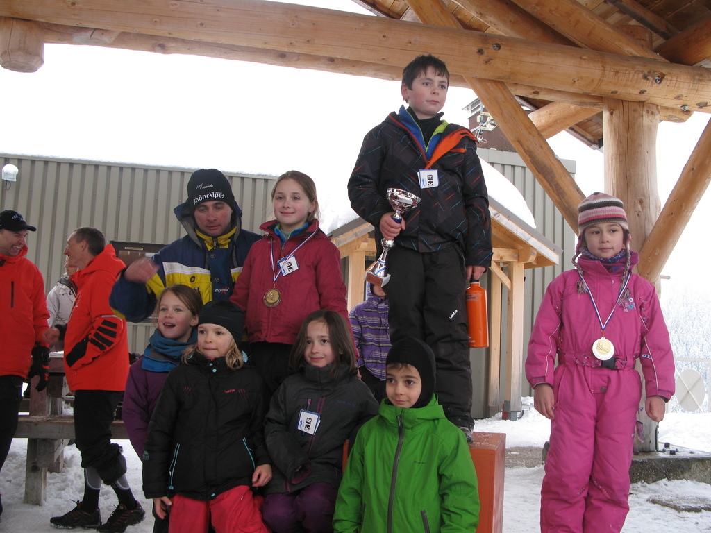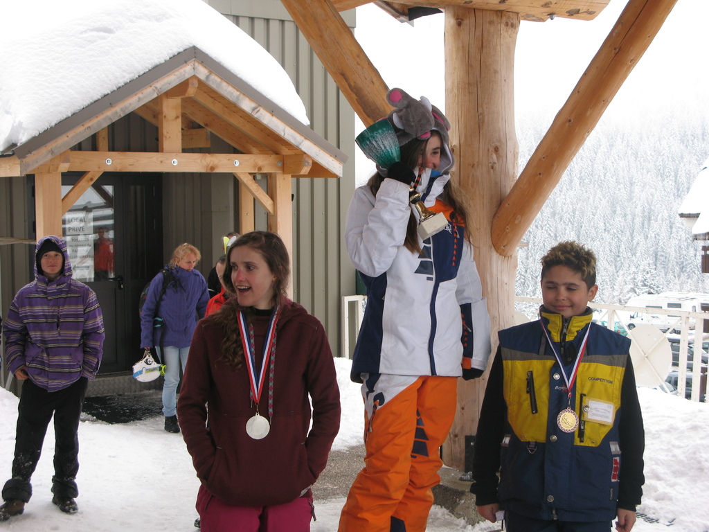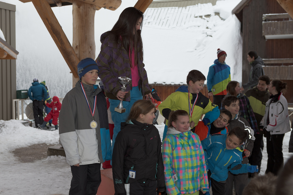 Après une journée bien chargée, boardercross le matin et ski à fond l'apres midi, les champions et championnes sont récompensés par des médailles ou des coupes.